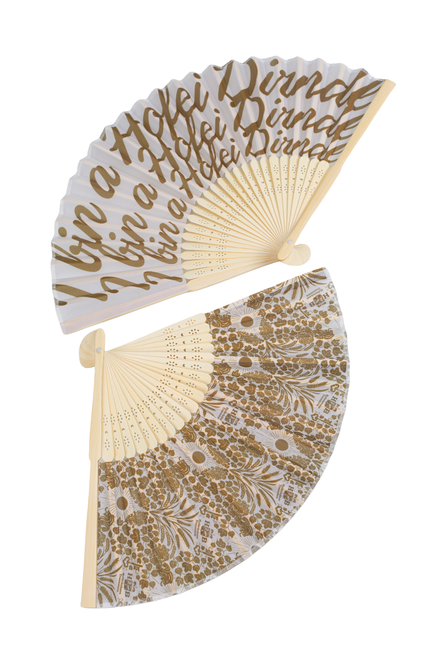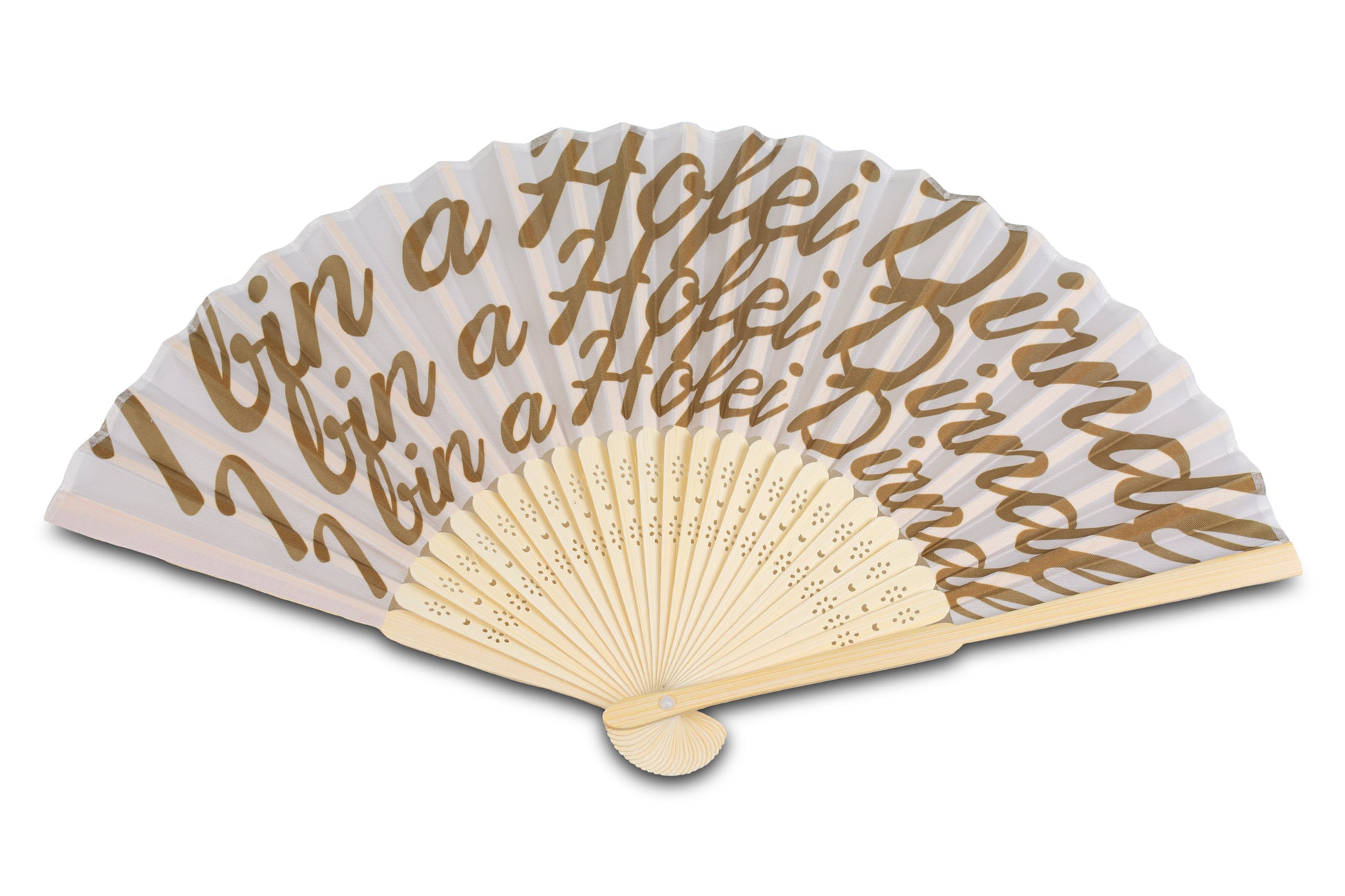 Ideal for hot days in the beer tent or as a stylish accessory for the next folk festival - with our fan you'll always stay cool! 😉 You can choose between the elegant pattern and the casual print "I'm a Hofei-Dirndl". Both versions shine in white and gold and not only provide a breath of fresh air, but also envious glances in the beer tent.